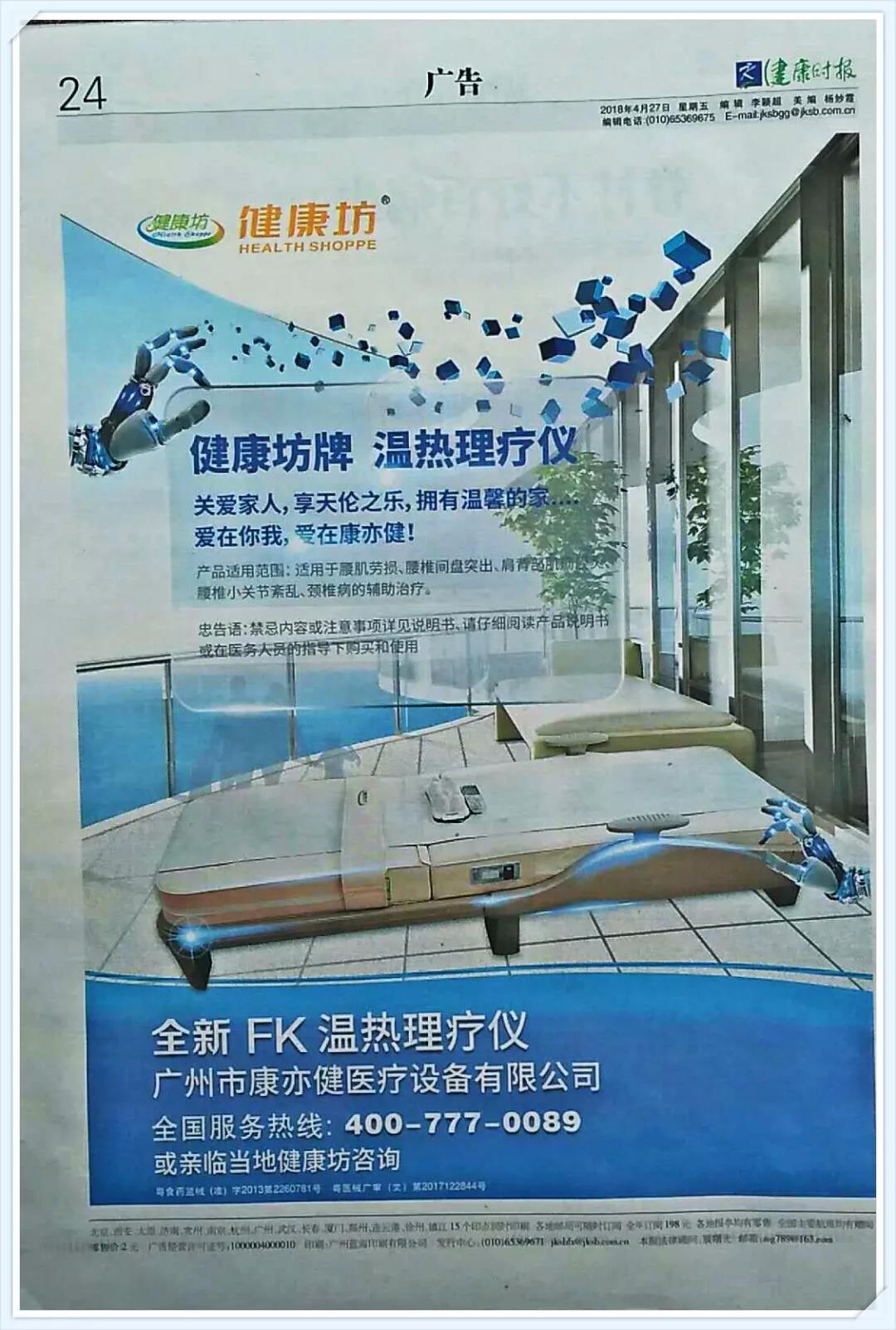 康亦健舉辦本次脊柱公益活動意義深遠、社會影響力大,健康正能量的傳遞得到了全國媒體的高度關注和力挺,全國諸多主流媒體紛紛報道了本次活動的內容及相關圖片,健康行業(yè)知名媒體人民日報《健康時報》,4月26日,在其新聞(23版)刊發(fā)報道,文章以《脊柱不好百病生》為題,對本次大型公益活動進行了報道宣傳,再一次提升了康亦健的品牌形象。